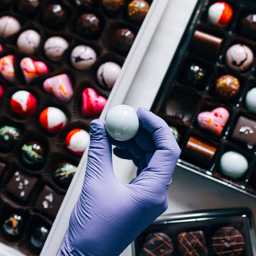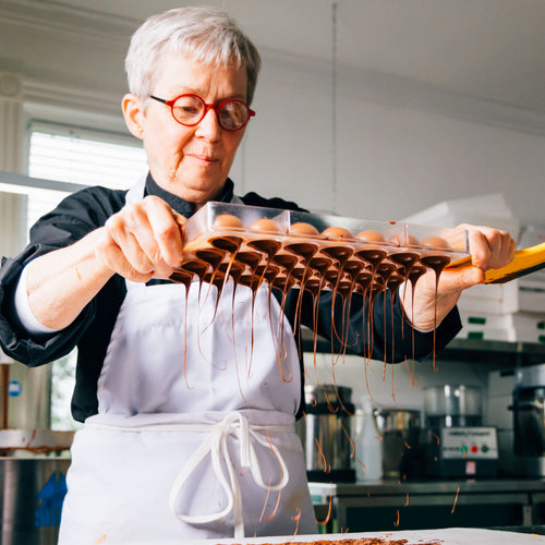 Even now after tapping countless molds, we hold our breath in anticipation as we turn over each bonbon to reveal a unique work of art.